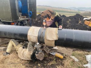 On April 13, 2021, PJSC “NAFTOGASBUD FIRM” started work on the project “Overhaul of the 1st stage of the linear part of the oil pipeline” Brody – State Border “with the replacement of the pipe Du 500 in the section km79.3 – km 106.5. Welding of the 1st joint was performed.